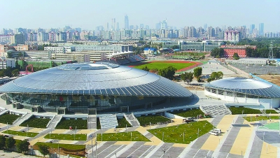 第二十九届北京奥运会羽毛球、艺术体操项目比赛场馆,坐落在北京工业大学校园内。中铁建设集团设备安装分公司承建该工程通风空调安装任务,该场馆要求比赛大厅距地面九米内气流每秒不得大于零点二米,观众席采用座位下侧送风,这项工艺在国际上属首例。目前,他们正在对设备进行精确调试,备战奥运会。图为该场馆外景。 徐 春 赵国明 余振飞 摄