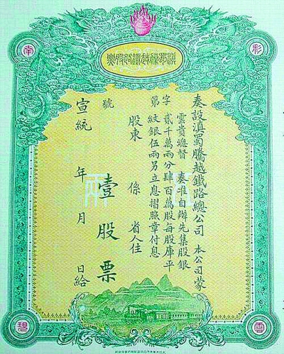 ▲中国第一支铁路股票 |