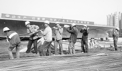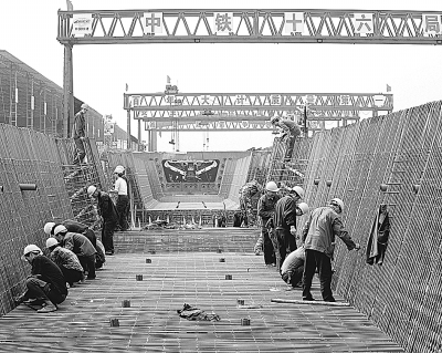 担负武广客运专线Ⅲ标段施工任务的十六局集团五公司为夺取救灾重建全面胜利,迅速组织掀起百日施工大干高潮。左图为齐心协力,施工大干。右图为绑扎900吨混凝土箱梁钢筋。 杨卧龙 闫培杰摄