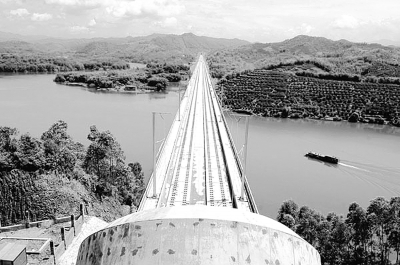 在广东省清远担负武广客专施工的十二局集团四公司,利用南方雨多的时节,在隧道、桥梁、路基旁种草植树,全力打造绿色生态路。图为黎头咀大桥路段一景。 安剑承 吕 燕 摄