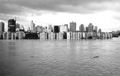 图为洪水围困的柳州城。