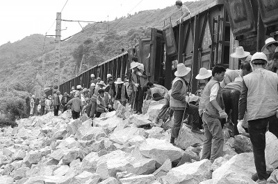 全体抢险人员连续奋战30多个小时,人工搬运20多个车皮的片石,对下沉路基进行有效加固,成功排除了险情。