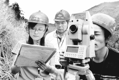 十七局集团五公司通过采取以老带新,以师带徒“手递手”传帮带技能培训,岗位练兵,岗位交流等形式,灵活多样地培养青年优秀人才。图为7月16日该公司湖南汝郴项目书记朱传忠(中)现场指导技术人员测量。 杨春杰 李 媛 摄 |
