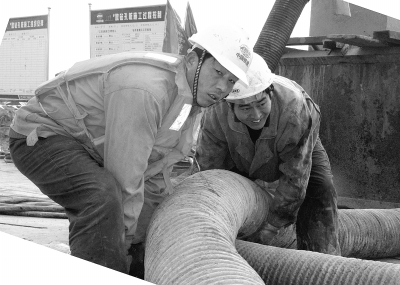 近日,担负宜汉铁路汉江大桥施工的十二局集团一公司宜汉铁路项目部全体员工,不分昼夜奋战在工地上,“大战120天,抢在汛期前,圆满完成水中桥墩主体工程!”图为火热的工地一角。 本报记者 武 羽 摄
