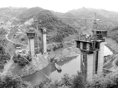 由十七局集团承建的安(康)毛(坝)高速公路是国家西部大开发的重点工程,其中,AME6合同段由于沟壑纵横、地势险峻、控制性工程多,成为全段重难点工程。图为溢家河特大桥首家进入梁部施工。 李梦新 唐昭慧 摄 |