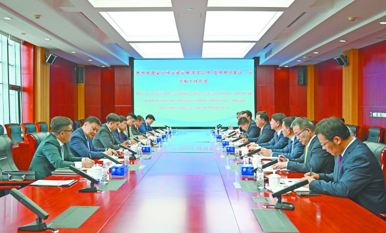 戴和根对博·德勒格日赛汗部长一行到访表示热烈欢迎,对其长期以来对中国铁建的关心和支持表示感谢,并介绍了中国铁建的总体情况和在蒙发展情况。戴和根表示,近年来,中国铁建深入践行“海外优先”战略,在蒙实施了一批重点基础设施建设项目,公司所属中国铁建大桥局今年5月中标的中蒙跨境铁路桥项目首根桩基已顺利开钻,项目正式进入实质性施工阶段,成为中蒙两国在基础设施建设领域深化合作的生动实践。下一步,中国铁建将全力以赴,将中蒙跨境铁路桥打造成为共建“一带一路”倡议与蒙古“草原之路”战略对接的示范项目,同时公司将充分发挥自身优势,积极参与蒙其他重大基础设施项目建设,为蒙古国经济社会发展持续贡献铁建力量。