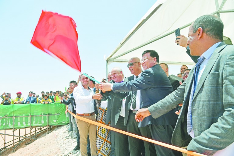 7月7日,戴和根、阿尔及利亚廷杜夫省省长穆斯塔法·达胡、业主代表贝内阿比亚·阿波德萨菲尔等共同出席阿尔及利亚西部铁路矿业线项目135公里优先段轨道铺通仪式。